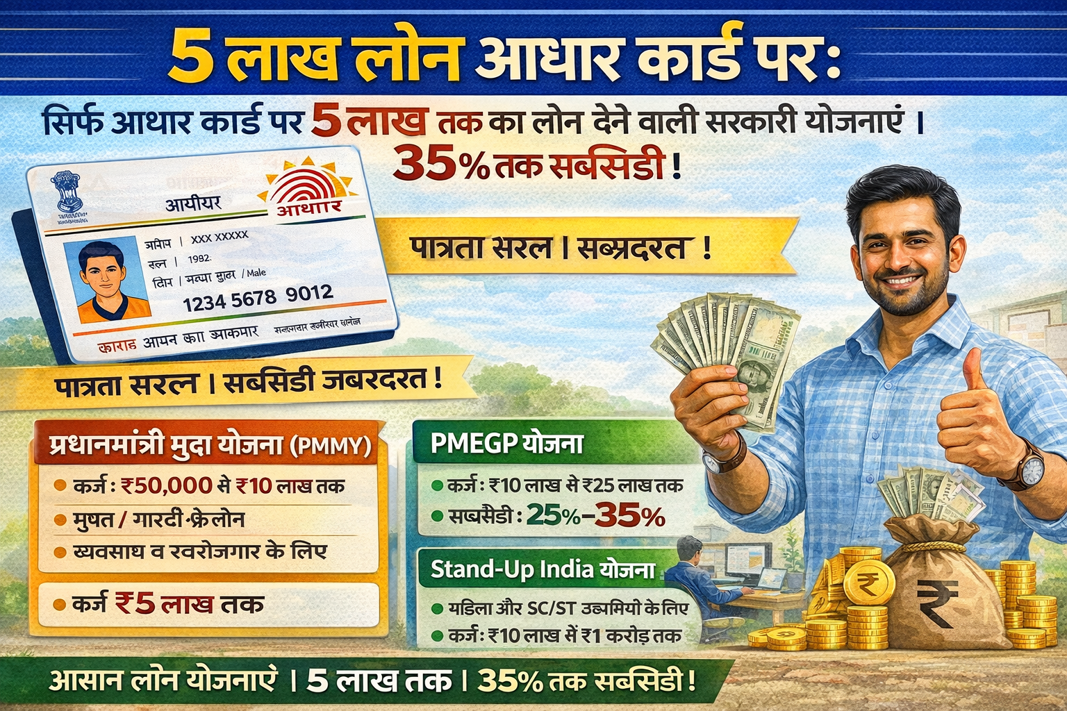 आधार कार्ड पर 5 लाख तक का लोन लेना पूरी तरह संभव है, बशर्ते आप सही सरकारी योजना चुनें।